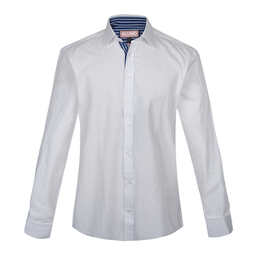 ALUMO(阿鲁姆)来自瑞士,是由Albrecht和Morgen AG的家族在40多年前建立起来,生产全世界最顶级的衬衫面料。 ALUMO使用的是精梳超细埃及棉GIZA45(埃及品质最好,产量最少,价格最贵的棉花,约占全世界棉花产量的十万分之一),在瑞士纺纱、加捻、织造和后整理,全部生产过程都在自己的工厂进行,积累了丰富的生产经验,后整理的效果柔软而自然。